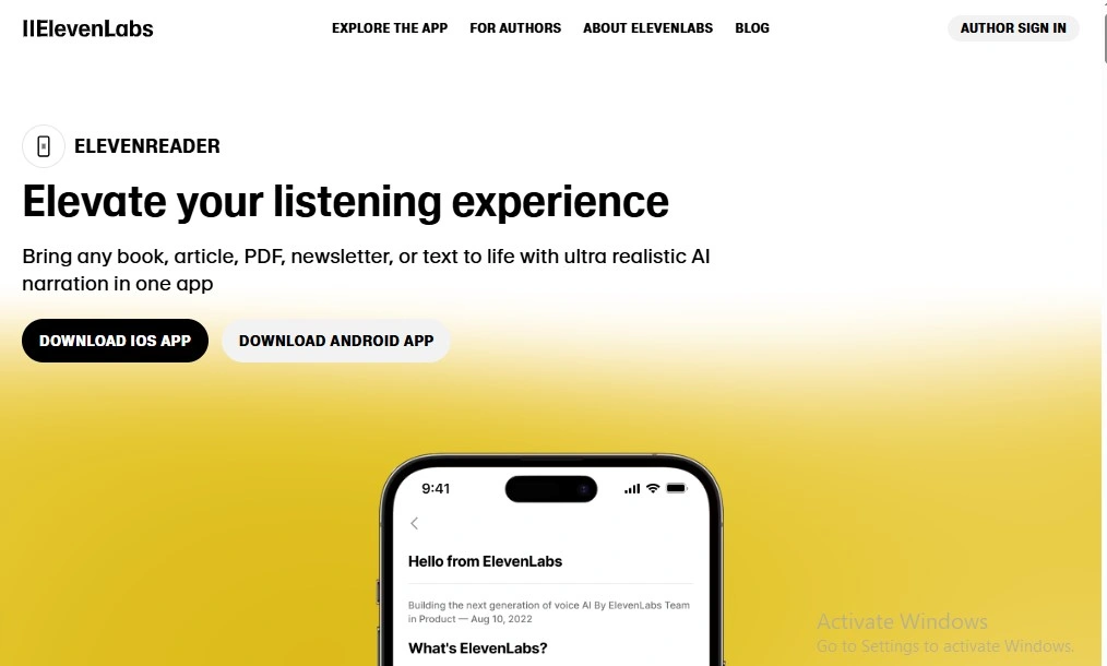 ElevenReader is a natural-sounding text reader application that is just a piece of ElevenLabs io’s toolkits. This application is designed to read aloud written texts with lifelike voices. This Audio content platform is completely AI-powered, whose core mission is to make content consumption easier and more efficient, as well as the learning process. Using ElevenLabs Text Reader, you can listen to read aloud —